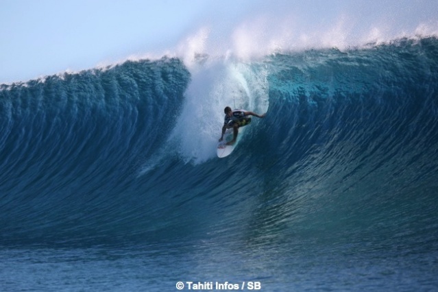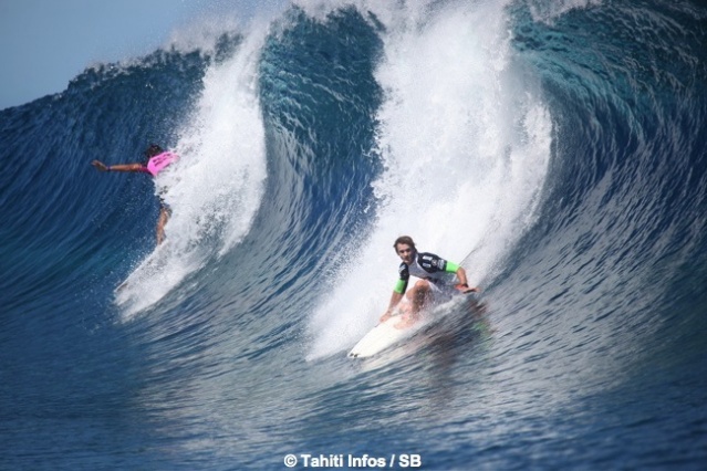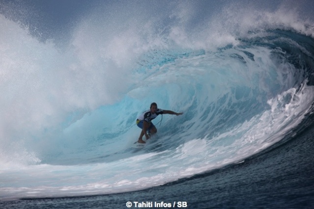 On se souvient de la bonne performance du réunionnais Jeremy Florès en 2012 à cette même compétition, malgré des notes pas forcément à la hauteur du talent de Jérémy, dans ce spot qu’il fréquente depuis des années. Jérémy le réunionnais excelle à Teahupo’o : Il totalise 19.33 pour un maximum de 20 et sort Brett Simpson l’américain dans sa série de repêchages, réalisant ainsi le meilleur total de la journée. 4 séries plus tard il enchaîne avec le round 3 et totalise encore un excellent score (17.87) parvenant à gagner contre Damien Hobgood. Jérémy est un des trois surfeurs à obtenir la note maximum de 10 sur une vague, avec John John Florence et Mick Fanning.
