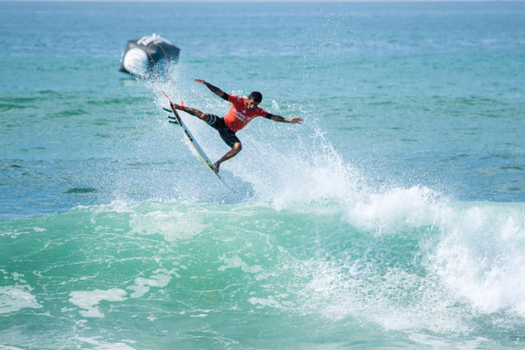 Dans ce round 3, un round toujours délicat puisqu’il se joue en format ‘un contre un’ en élimination directe, il a dû affronter l’actuel N°4 au classement général, Filipe Toledo. Le Brésilien s’est montré très en forme, comme la plupart des surfeurs évoluant dans le Top 34. Il a sorti le grand jeu en tentant un air 360° qui est passé.