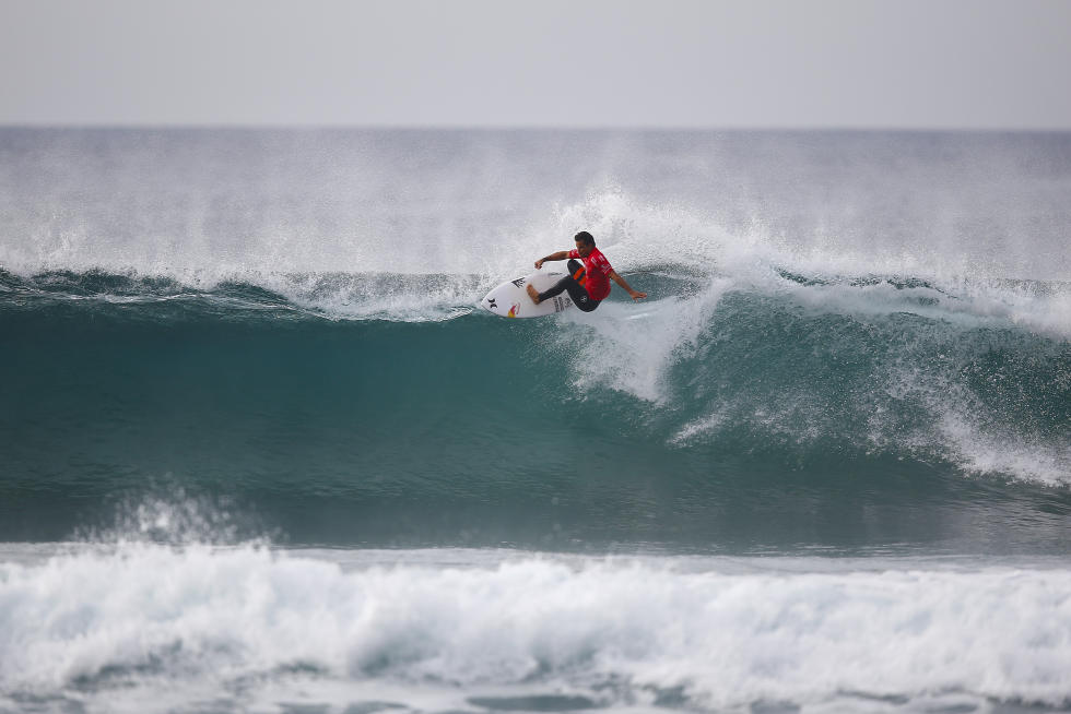 Après trois jours d’attente, la compétition a repris ce jeudi matin sur un spot « glassy », proposant de belles vagues d’environ deux mètres. Michel Bourez, qui a ce stade était assuré d’une 9e place, était confronté à deux « rookies », deux nouveaux sur le tour : le Brésilien Caio Ibelli, tombeur de John John Florence au round 3 et Davey Cathels qui a pu éliminer le champion du monde 2014 Gabriel Medina au round 3.