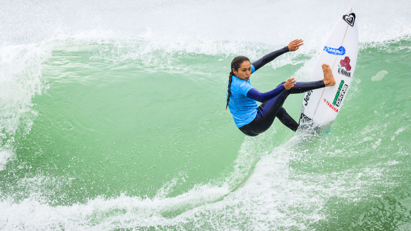 Dans ce round 1, elle était opposée à l’Australienne n°1 mondiale Stéphanie Gilmore et à l’Américaine 14e mondiale Sage Erickson. Comme chez les hommes, les femmes sont notées par rapport à leurs deux meilleures vagues prises dans leur série. Les deux vagues sont notées sur 10 pour un total sur 20. Stéphanie Gilmore confirme son statut et remporte la série avec un 5.93 et un 5.43, totalisant 11.36.