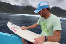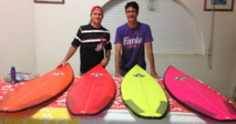 Tahiti Infos est allé à la rencontre de son sponsor et shapeur Teva Bonno, qui lui a remis ses nouvelles planches. Teva, surfeur à tendance ‘écolo’ fonctionne au solaire dans son atelier de Punaauia depuis 10 ans déjà. Avec sa marque ‘Teva Surfboards’, il est un des shapeurs de référence à Tahiti depuis 1995. Il a appris son métier avec des shapers renommés, en France ou à Hawaï.