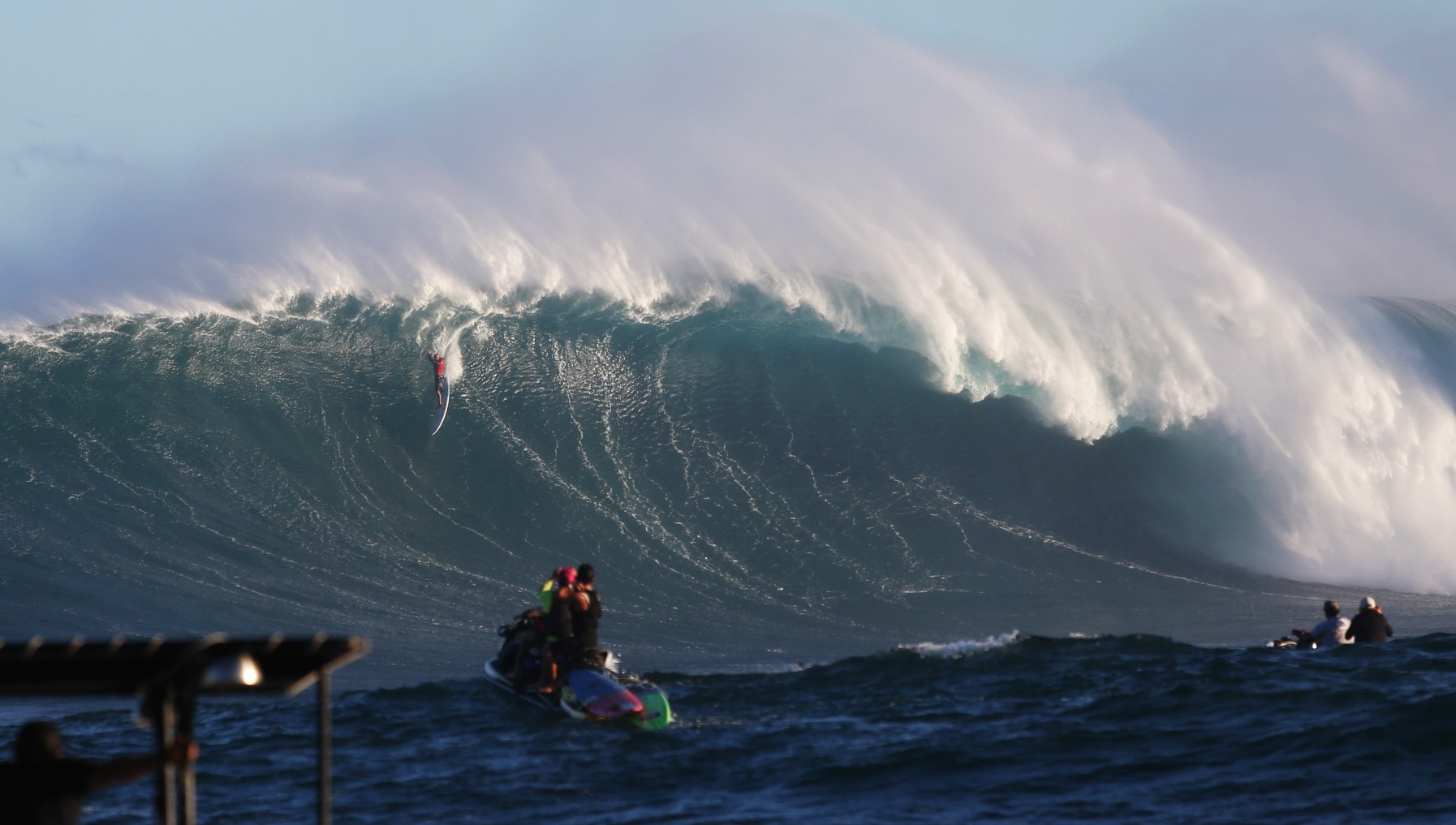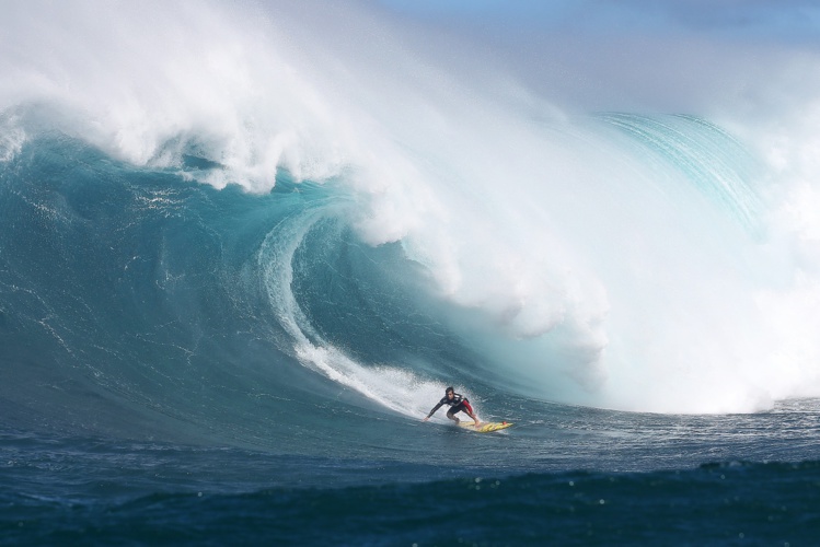 HAWAI’I, le 6 décembre 2015. L’histoire du surf de compétition vient franchir une nouvelle étape avec la 4e compétition du Big Wave World Tour organisée par la World Surf League. Cette compétition s’est déroulée ce dimanche dans le spot de surf le plus réputé au monde, Pe’ahi, connu aussi sous le nom de ‘Jaws’ (la mâchoire).