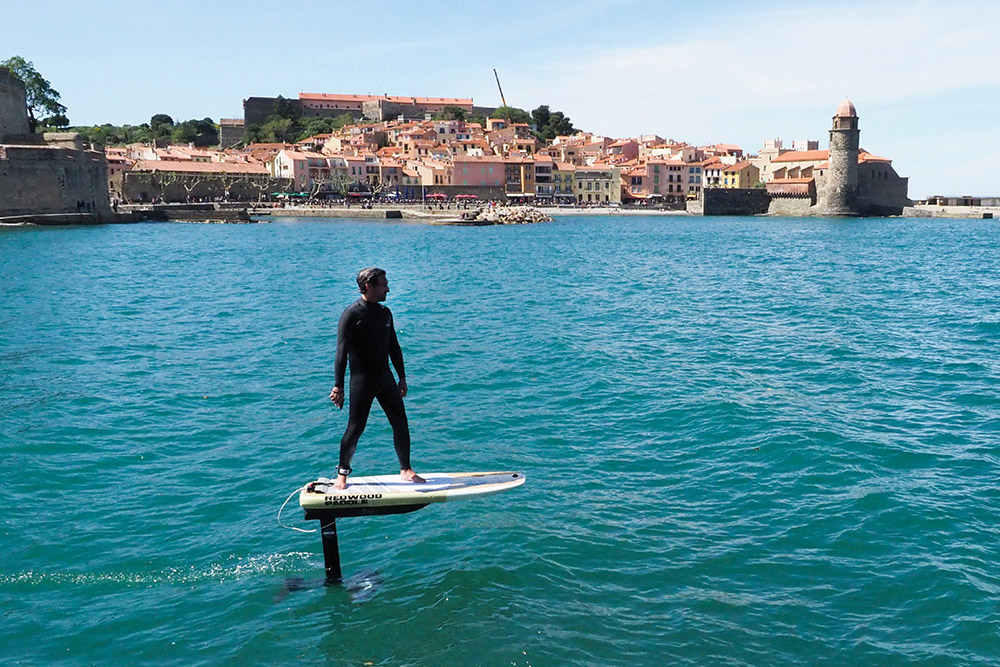 Collioure, France | AFP | mardi 13/05/2019 - "Regarde, c'est Jésus sur l'eau", "Encore un truc américain": en ce début mai, les badauds qui déambulent sur le port de Collioure s'ébahissent devant un surfeur qui décrit des arabesques à 30 cm au-dessus de l'eau.