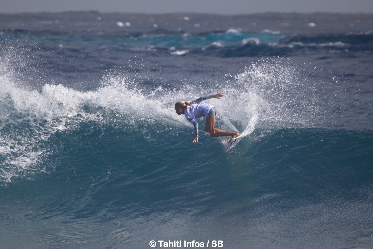 C’est la favorite Karelle Poppke qui s’est imposée dans la catégorie open, devant la jeune Aelan Vaast 2e, Heimiti Fierro 3e et Emilie Tuaillon 4e. En junior, c’est Heimiti Fierro qui gagne devant Tehani Tefaatau, Aelan Vaast et Ynès Balcon. A noter également les bonnes performances de Lovina Yin Sun qui s’impose dans les catégories bodyboard, bodysurf et longboard.
