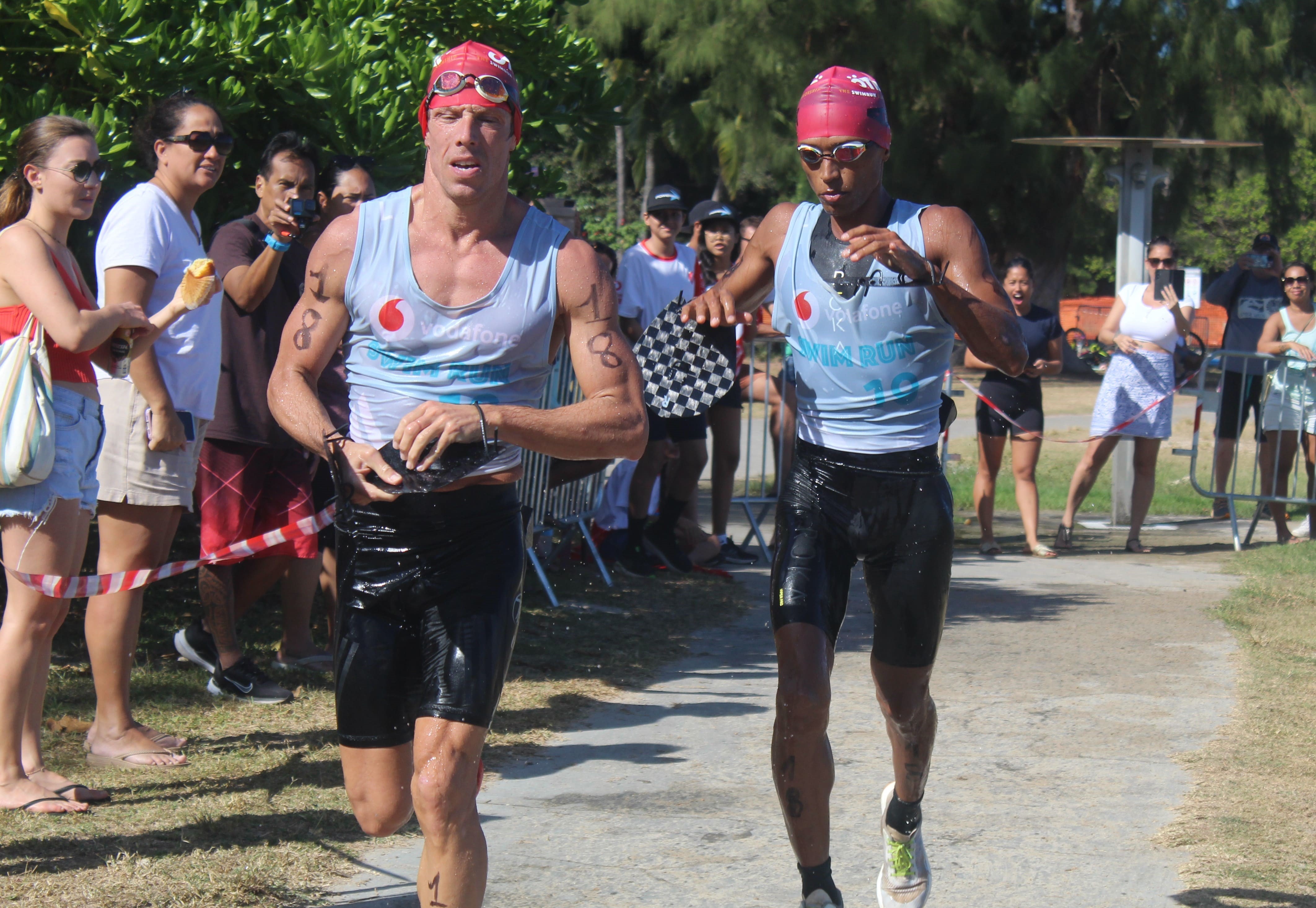 Kohai Schmit et Philippe Teaonui ont de leur côté été très performants sur le swimrun S. Ils ont parcouru les 9,7 km en 1h29’16’’, un chrono très intéressant. Donovan et Jason Dupuy leur ont concédé près de 5 minutes pour prendre la deuxième place devant Vaaroa Salmon et Steevy Damiri, 3es à dix minutes des vainqueurs. Premier duo mixte, Maïdi Susset et Robin Peretti, 6e en 1h41’42’’. Le Vodafone SwimRun s’est poursuivi dans l’après-midi avec un aquathlon XS dont les distances étaient accessibles à tous les niveaux et les courses jeunes.