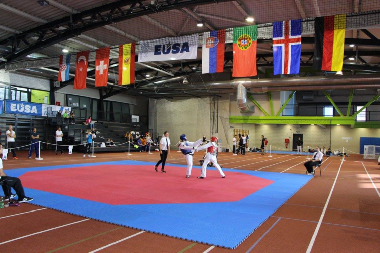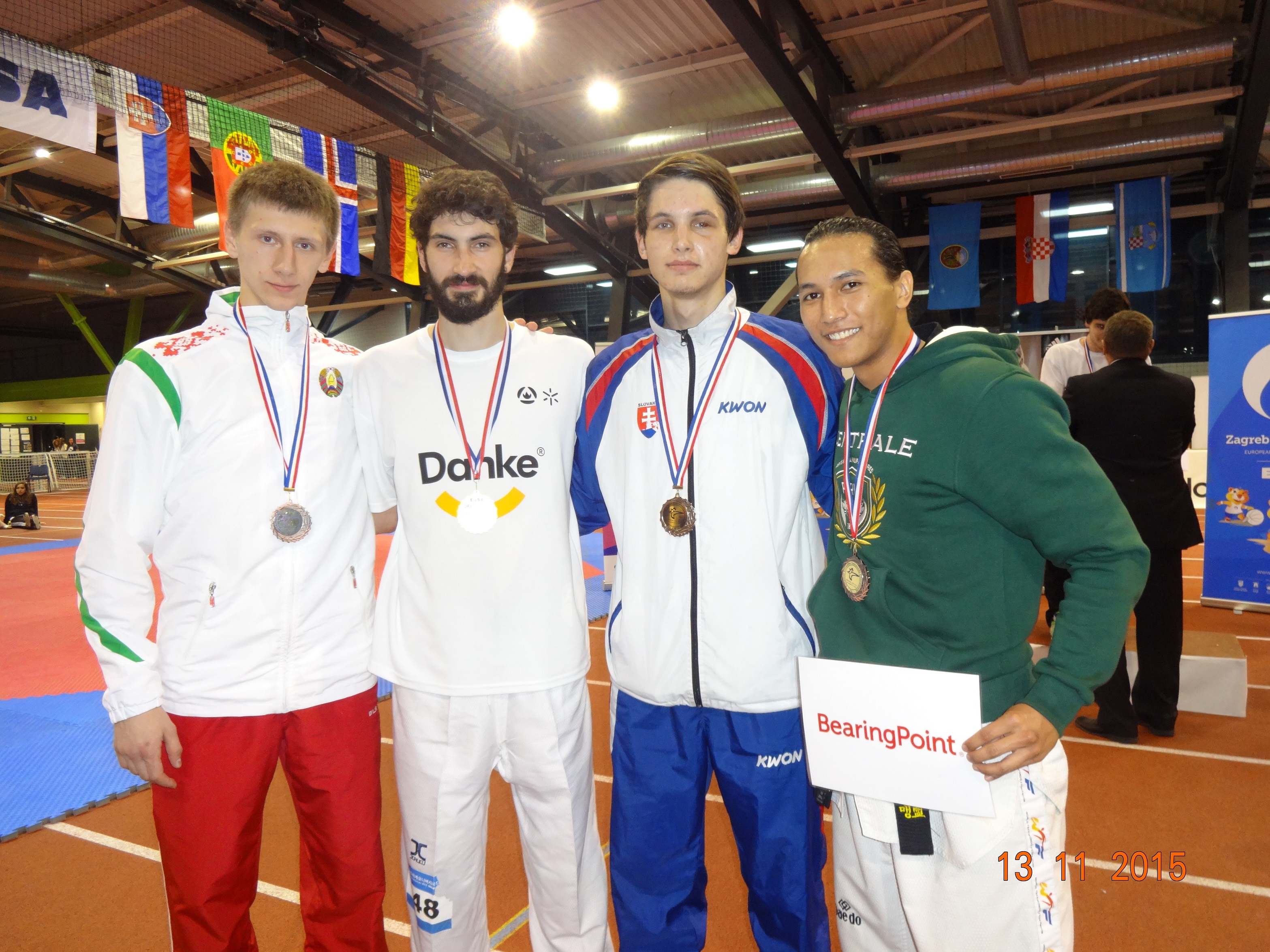 <strong>CROATIE, le 16 novembre 2015</strong>. Brandon Cheneson a participé du 11 au 13 novembre derniers aux championnats d’Europe universitaires de taekwondo, qui se sont déroulés à Opatija en Croatie, une compétition organisée par l’EUSA (European University Sport Association). Il a brillamment obtenu une médaille de bronze dans sa catégorie des – de 74 kg. <br /> <br /> <strong>89 étudiants ont participé, dont 49 hommes</strong> et 40 femmes, issus de 46 universités différentes représentant 16 Pays européens. Rappelons que Brandon a été champion de France universitaire en 2014 à Montpellier dans la catégorie olympique des – de 80 kg. <br /> <br /> <strong>C’est grâce à ce titre acquis en 2014 </strong>qu’il a pu obtenir son ticket d’entrée pour participer à ces championnats ‘Euro’ universitaires 2015 en Croatie, pour représenter la France, ce malgré un an sans compétitions en raison des études qu’il poursuit depuis un an en Chine. <br /> <br /> <strong>Ces championnats se sont déroulés en 3 jours :</strong> <ul> <li class="list">Le mercredi 11 novembre : entrainements des athlètes et pesée</li> <li class="list">Le jeudi 12 novembre : épreuves qualificatives, lors desquelles les combattants doivent gagner leur place en demi-finale. Les athlètes sont répartis dans 2 poules et combattent entre eux pour se départager.</li> <li class="list">Le vendredi 13 novembre : demi-finales et finales.</li> </ul> <div class="list"> </div> <strong>Brandon est parvenu à sortir des poules qualificatives</strong> pour décrocher sa place en demi finale à l’issue de 2 combats, le premier contre le portugais Julio Ferreira et le second contre un Allemand, Martin Raouf. Il s’incline en demi finale contre un Slovaque, David Djako, et devra se contenter d’une médaille de bronze.
