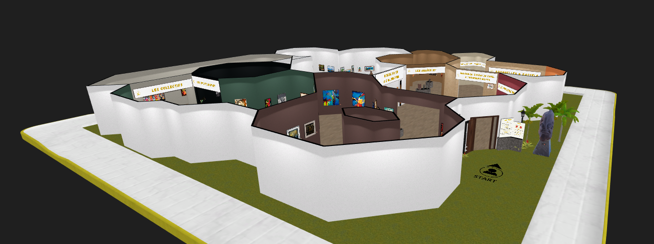 Il y a dans cette exposition virtuelle huit salles d’exposition où sont présentés 191 tableaux et 30 sculptures de 142 artistes. Les différentes salles sont organisées selon des thématiques majeures : photographies, contemporains, années 80, œuvres abstraites, encres de chine, aquarelles… Vingt-neuf interviews ont été réalisées pour compléter la présentation des œuvres. Ces interviews interrogent les artistes comme par exemple Teva Victor ou bien encore Nathalie Euryale pour mieux les connaître et mieux comprendre leur démarche.