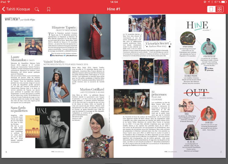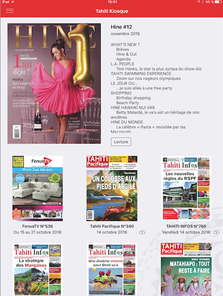 Une plateforme qui pour le moment propose essentiellement les titres du groupe de presse Fenuacommunication, à savoir Tahiti Infos, Tahiti Pacifique, Hine et Fenuatv et qui étoffera son offre par la suite avec d’autres titres ainsi que des contenus enrichis.