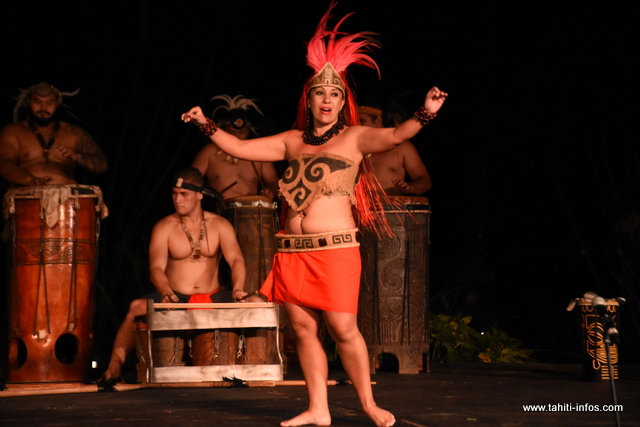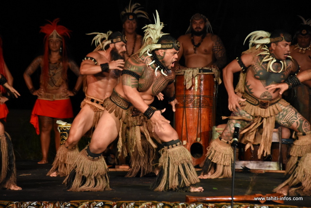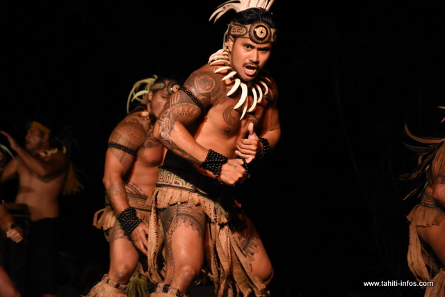 La troupe de Tumata Robinson a enchanté le public venu nombreux pour l'ouverture du "Te Hura Nui", vendredi.
