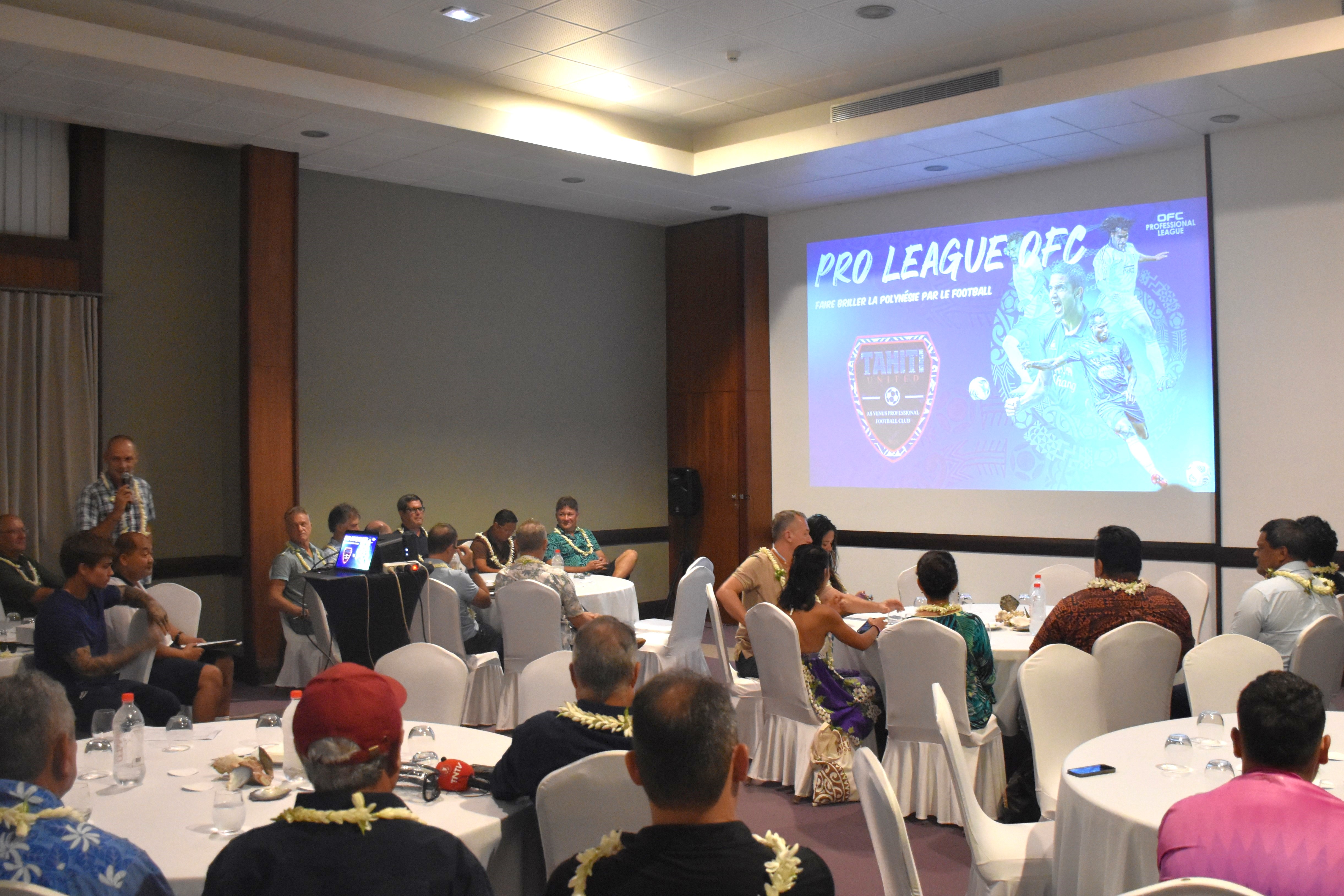 Tahiti, le 12 mars 2025 - Tahiti United. C’est le nom de l’équipe qui représentera toute la Polynésie pour la Pro League, la nouvelle compétition lancée par l’Oceania Football Confederation (OFC). Porté à bout de bras par le club de l’AS Vénus, le projet, déjà bien structuré, a été présenté mercredi soir au Tahiti by Pearl Resorts devant les partenaires publics et privés. Tous sont conscients que cette équipe doit voir le jour pour le bien-être du sport en Polynésie. Il ne reste maintenant que quelques semaines pour finaliser le projet, et chacun doit s’activer pour qu’il soit prêt à temps. Le compte à rebours est lancé.