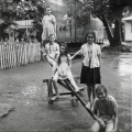 A la récréation, les filles s’amusent sur les balançoires ou à monter sur les drums. A l’Ecole des Frères, le jeu préféré des garçons est de grimper avec ou sans les pieds aux cordes qui sont accrochées dans les manguiers.