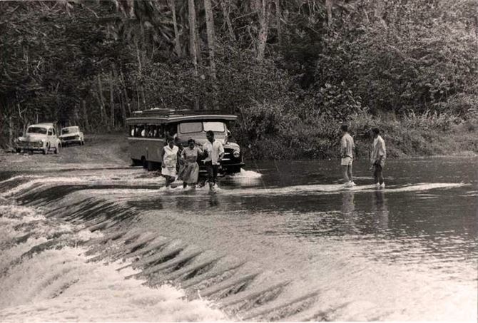 8. Le fameux radier de Tautira en 1950, qui permettait de franchir la rivière Vaitepiha.
