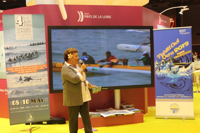 La Polynésie française « destination nautique » propose une offre diversifiée de charter, mais aussi une large palette d’activités nautiques ; cette année pour la première fois, le Va’a, sport nautique emblématique du fenua, a été mis à l’honneur. Grâce au partenariat entre la Fédération, Air Tahiti Nui, EDT et Tahiti Tourisme, un Va’a V1 était exposé devant le pavillon Tahiti. La délégation de la FTV composée de Mme Doris Hart, sa présidente, et de son directeur technique, a multiplié les rencontres pour valoriser le va’a, accompagner le développement de ce sport en France et multiplier les échanges et les partages avec les rameurs de métropole.