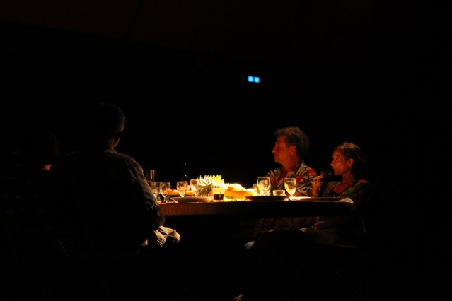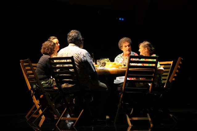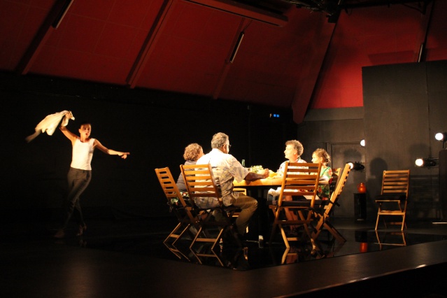 En entrant dans la salle, et en observant les convives réunis autour d’une table fournie, l’ambiance est détendue. Mais la pièce, nerveuse et bouleversante, est une comédie qui sombre doucement et surement, dans la tragédie.