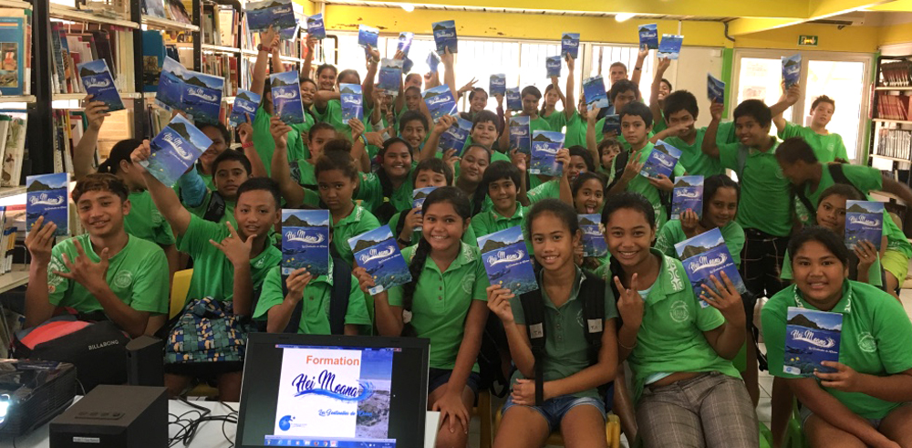 Moorea, Tahiti, Huahine, Bora Bora, Raiatea ou encore Rangiroa, les équipes de te mana o te moana n'ont pas hésité à parcourir du terrain pour sensibiliser les Polynésiens et surtout les petits Polynésiens à leur nouveau programme Hei Moana à travers différentes initiatives de sciences participatives liées au milieu marin. Ce programme vise l’éducation, la sensibilisation, l’implication du grand public dans l’observation et la protection des espèces et écosystèmes marins menacés en Polynésie à travers des séances de formations et des outils adaptés. L’objectif du projet est de former un réseau de référents et d’éco sentinelles déployés sur toute la Polynésie et de sensibiliser les enfants.