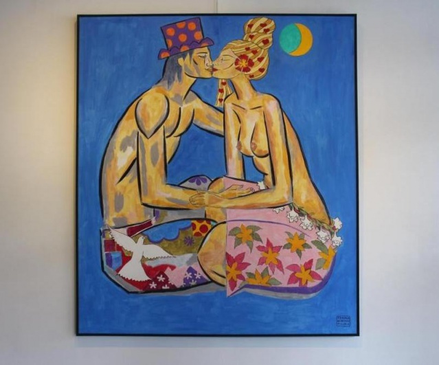 TAHITI, le 26 août 2020 - Le peintre propose une vingtaine de nouvelles toiles. Son travail, toujours plus coloré, rend hommage aux couples amoureux, à l’amour, l’amitié, le partage. Les musiciens gardent également une place de choix pour célébrer la communion.