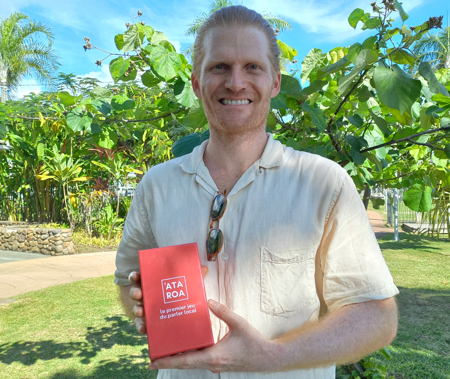 TAHITI, le 5 avril 2023 - Teiki Kimball finalise la conception d’un jeu intitulé Ata Roa. Simple et accessible au plus grand nombre, ce jeu compile des expressions et mots en lien avec la Polynésie, une version locale de Blanc-manger coco local. Ce projet est un parmi d’autres pour ce Polynésien, qui partage sa vie entre le fenua, les États-Unis et l’Europe.