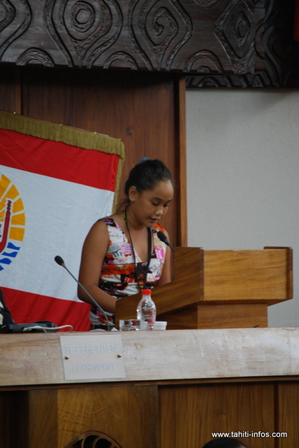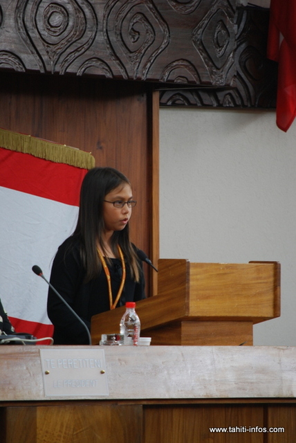 Ils étaient quatre à briguer le poste, deux garçons, Terahnui Taputu, Marama Simoneau et deux filles, Mahana Gillot et Mahine Terororia. Chacun des prétendants s'est démarqué avec des discours complètements différents. L’un misait sur le respect du règlement intérieur, et sa volonté d’établir l’ordre. Une autre est revenue sur les deux textes étudiés le matin même en commission, s’engageant à ce que « les représentants séniors prennent en compte les textes et qu’ils deviennent de vrais de sujets de délibérations ». Enfin une troisième a fait des promesses et s’est proposée à être « le capitaine » de l’assemblée.