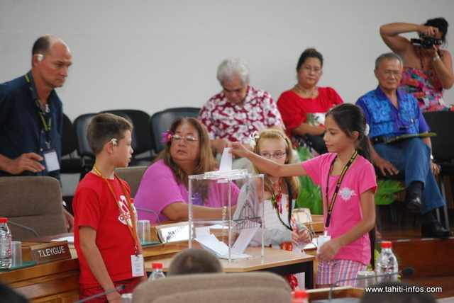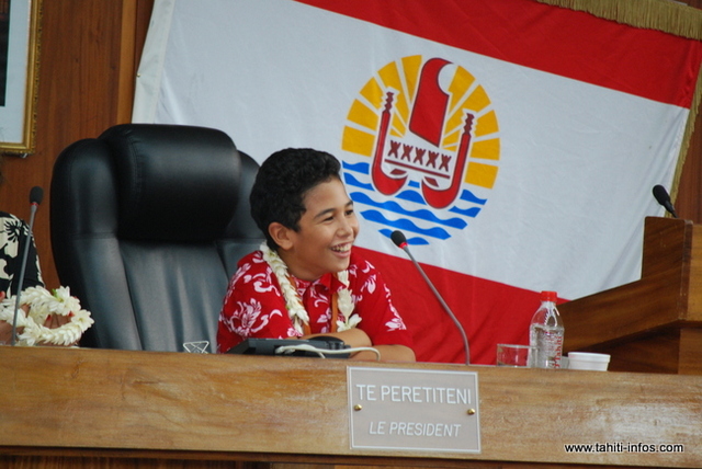 Avec un discours sur la nécessité de préserver notre environnement, le jeune Terahnui Taputu de 10 ans, a été élu président de l’assemblée junior. Ce dernier a laissé éclater sa joie dès les résultats annoncés. Il aura en effet fallut deux tours pour que soit désigné le président.
