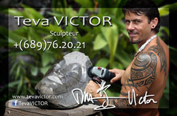 Teva VICTOR est connu du public pour ses apparitions dans les différents médias par les missions qu'il a pu présenter comme "Polynesian Artists" entre autre. Depuis quelques années il expose ses Sculptures sur pierres de Tahiti la première semaine de décembre à la salle Muriavai de la Maison de la Culture.