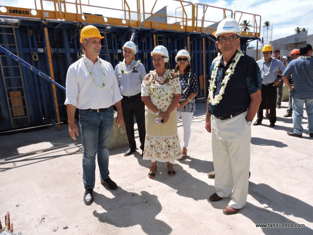 TEVA I UTA, le 24/08/2015 - Visite de terrain ce lundi matin pour le président du Pays Edouard Fritch au futur collège de Teva I Uta. 600 élèves pourront y être scolarisés. Aujourd'hui, le chantier avance bien et les gros œuvres sont quasi terminés. Plus d'un milliard et demi ont été investis pour la réalisation de cette nouvelle structure attendue depuis plus de 10 ans.