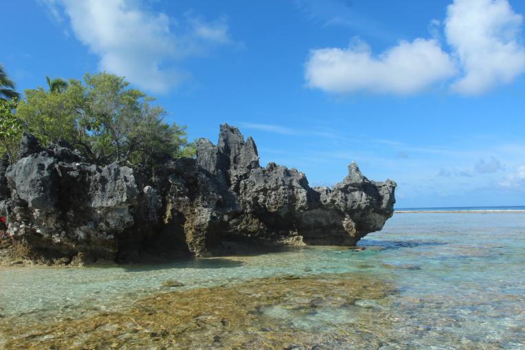 L’élévation d’une partie du récif de Tikehau est bien visible sur ce point de la côte, baptisé la cloche de Hina