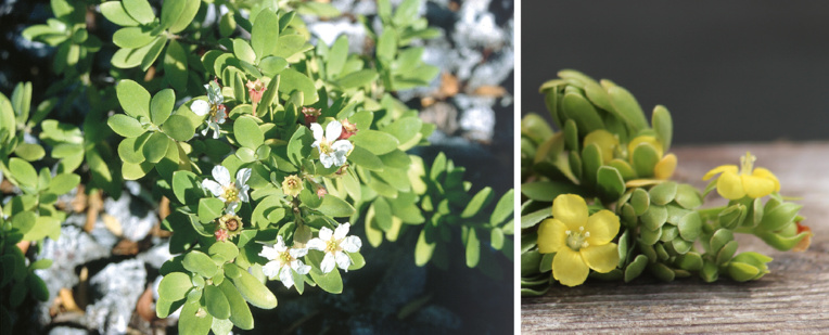 La prochaine fois que vous vous baladerez aux Tuamotu, prenez le temps d'observer ces buissons omniprésents que forment les miki miki et les u’u, parfois de véritables brousses impénétrables. Et amusez-vous à faire la différence entre Pemphis acidula (fleurs blanches à six pétales) et Suriana maritima (fleurs jaunes à cinq pétales).