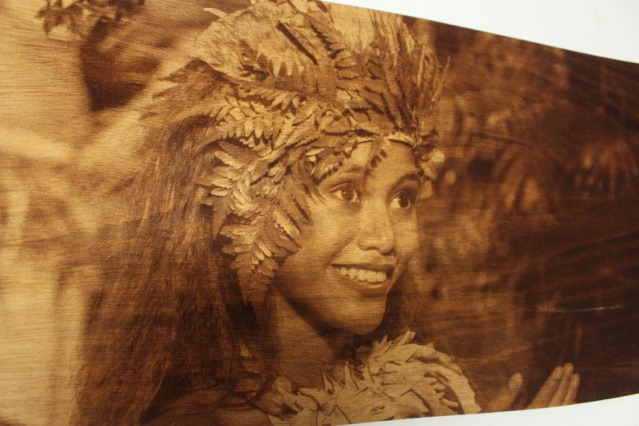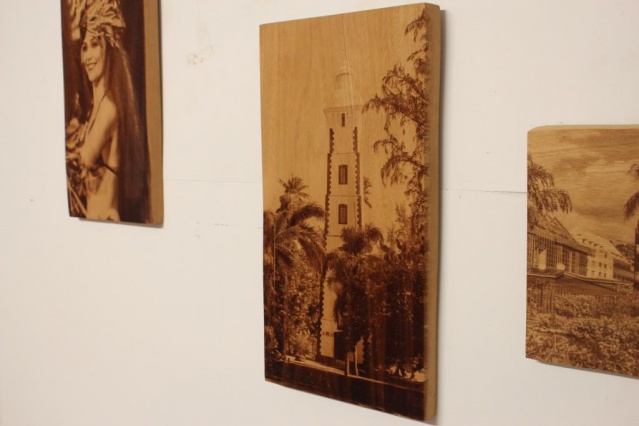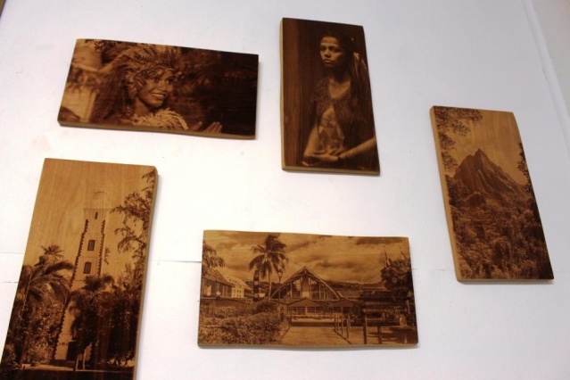 TAHITI, le 26 octobre 2020 - Mike s’est équipé d’une machine performante pour pouvoir transposer des photographies de paysages, des portraits ou des scènes de vie sur du bois, du marbre, de la céramique, de l’acrylique… En théorie, sur n’importe quel support. En réalité sur ceux qui passent ses tests.