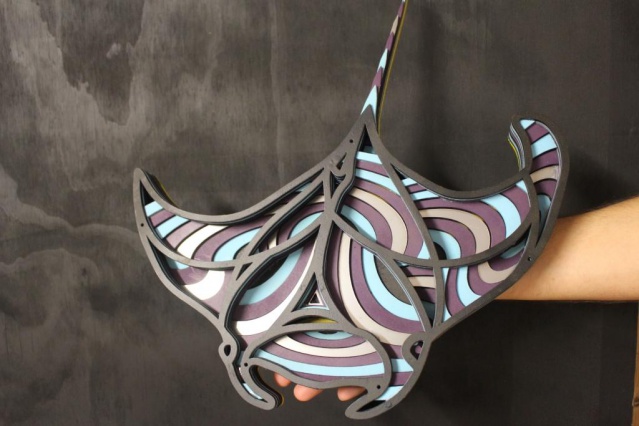 À présent, maintenant qu’il maîtrise sa machine, Mike aimerait faire évoluer son activité vers des réalisations plus artistiques. Il aspire à plus de créativité. Il a commencé à utiliser son laser pour découper des matériaux puis superposer les découpes obtenues et construire des tableaux ou objets multicouches. Le travail est en cours.