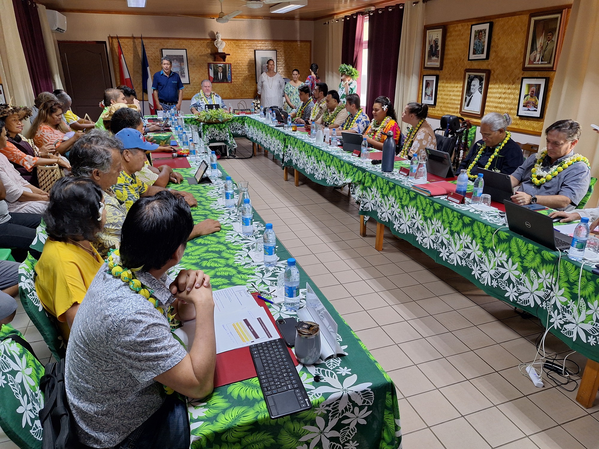 Le conseil des ministres s’est tenu à la mairie de Vairao, en présence des élus de Taiarapu-Ouest (Crédit : Anne-Charlotte Lehartel).