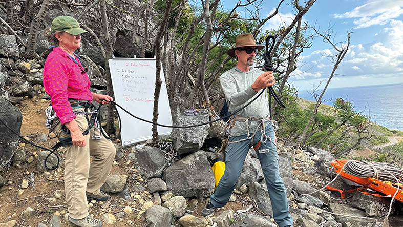 Jérôme Simonneau, avec qui Todd et Donette sont en relation depuis 2021, leur a indiqué un promontoire autrefois utilisé par un professeur en poste à Ua Pou pour introduire l’escalade comme activité pour les enfants. Todd et Donette ont relevé les anneaux d’attache en acier qui avaient rouillé et ont proposé de les remplacer gracieusement par des attaches en titane, plus résistantes à l'air marin.