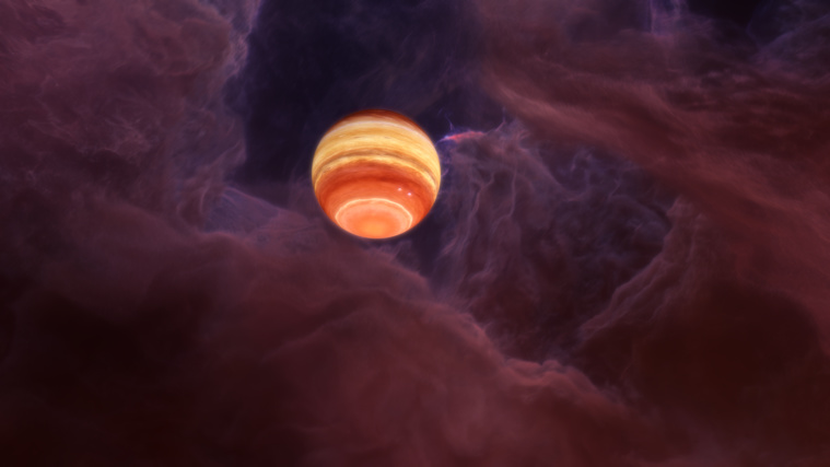 Cette vue d'artiste donne un exemple de planète errante détectée dans la région de Rho Ophiuchi. Une région où les observations ont récemment permis de découvrir au moins 70 de ces objets. © COSMIC-DANCE Team/CFHT/Coelum/Gaia/DPAC