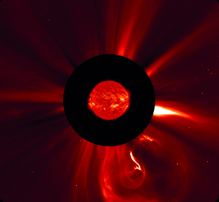 Les tempêtes solaires ou éruptions solaires font partie des activités du Soleil. Elles ont lieu régulièrement à la surface de la photosphère. Elles sont le résultat d’une accumulation d’énergie. Elles durent de quelques secondes à quelques heures selon l’intensité. Des particules sont projetées à plus de 2 millions de kilomètres par heure. En ce moment, le Soleil a une activité intense.