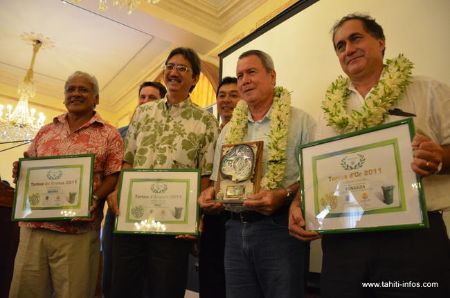 La commune de Punaauia a été distinguée par la Tortue d’Or 2011, vendredi 2 mars. Ronald Tumahai, son maire, a reçu la distinction lors de la 7ème cérémonie de remise de récompenses organisée, à Papeete, Présidence Broche, par la Société Environnement polynésien (SEP).