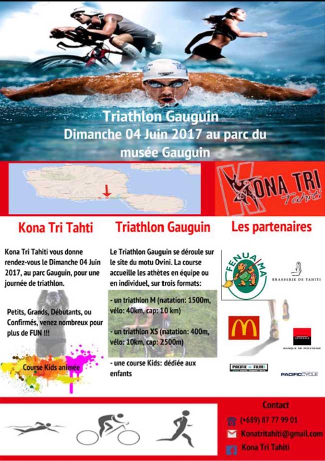 Les inscriptions peuvent se faire en ligne sur le site de la fédération tahitienne de triathlon : wwww.tahititriathlon.pf. C’est gratuit pour la course Fun Kids (pour les licenciés). Clôtures des inscriptions pour le M et XS à 8h30. Une Fun Kids (départ 12h) se fera pour tous ceux nés entre 2006 à 2009. Les inscriptions se feront sur place de 11h15 à 11h35. Renseignements : Yasmina au 87.77.99.01 ou par mail à [email protected] ou sur Facebook.