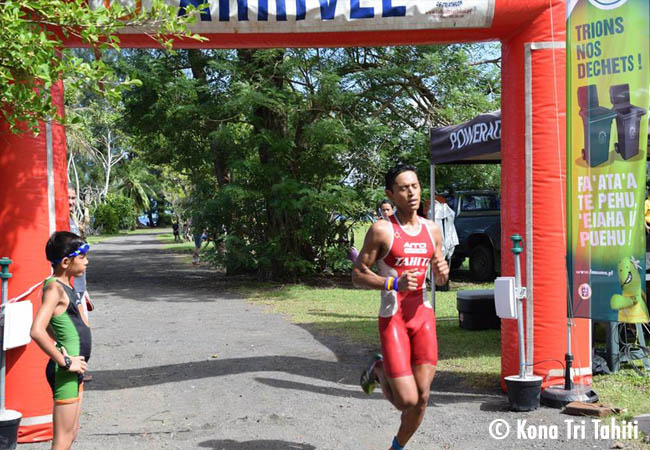 « Cette année, je me concentre sur les XTERRA et la dernière fois que j’avais roulé sur mon vélo de route contre-la-montre c’était l’an dernier à ce même triathlon donc j’étais assez sceptique sur mes capacités à bien rouler sur ces 40km de vélo. Finalement, ça s’est plutôt bien passé puisque j’ai clôturé ces 40km en 58’. En natation, je suis simplement resté dans les pieds de Teva Poulain qui est un bon nageur connu du Waterman Tahiti Tour. »