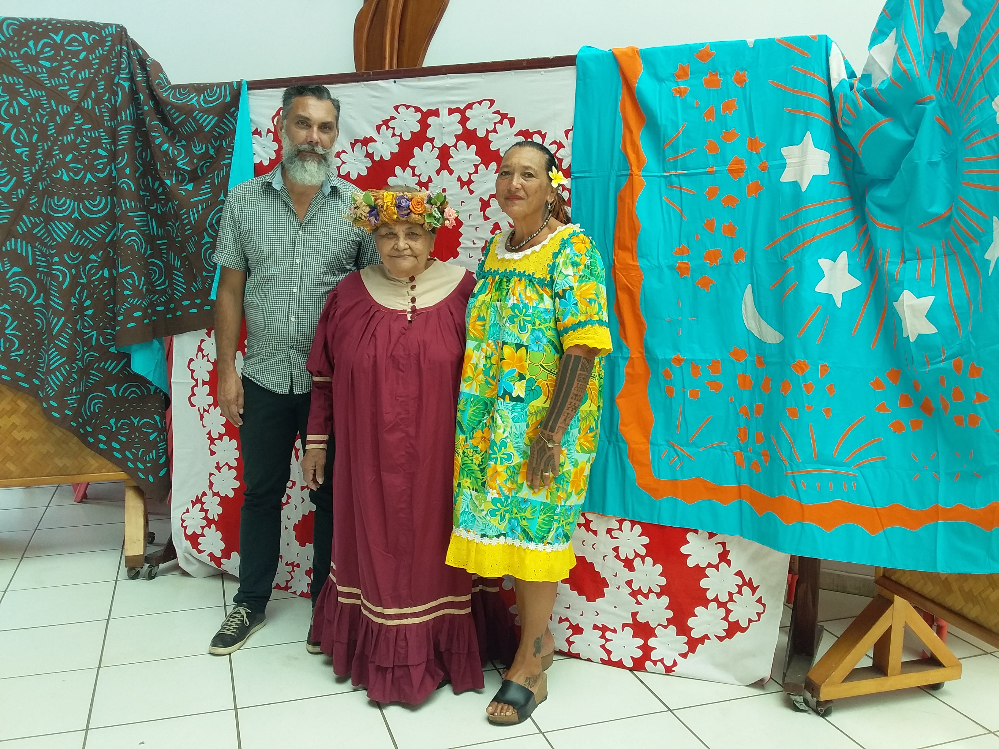 Jerry Biret, aux côtés de Virginie Biret, présidente de l’association Terama Nui, et Marie Rose Teuru-Taiarui, 8e adjointe chargée de la culture à la mairie de Punaauia.