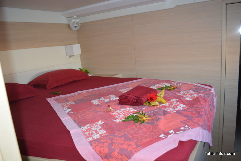 Le catamaran dispose de six cabines doubles, avec chacune sa salle de bain, l'air conditionné, un désalinisateur d'eau de mer, un générateur, des kayaks… Des bateaux à la pointe du progrès, et bien plus larges que les précédents. Cela les rend plus confortables avec un grand espace habitable, mais aussi moins sensibles à la houle comme le raconte le skipper qui vient de traverser deux océans pour en ramener un au Fenua : "Même avec des vagues de quatre mètres on ne s'en rendais pas compte dans le bateau ! Et c'est tellement grand que si on ne voulais pas voir quelqu'un de la journée, c'était facilement faisable" explique-t-il. On peut le croire. Entre les cabines, le grand salon, le deck et même un étage consacré aux bains de soleil et au timonier, il y a des appartements en ville moins spacieux.