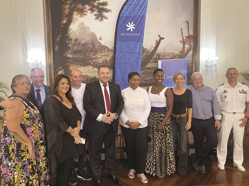 Une série de concours pour promouvoir la gastronomie polynésienne. Après la Guyane, la Martinique, la Réunion et la Guadeloupe, le Trophy Table Art (TTA) pose ses valises à Tahiti. Ce concours itinérant à un objectif de valorisation de la filière de la restauration, que ce soit pour la cuisine ou les arts de la table, des territoires d'outre-mer. “Ce sera une rampe de lancement pour la gastronomie polynésienne et son terroir” a expliqué la créatrice du concours, Beatrice Fabignon, lundi matin à la présidence. Une présentation effectuée en compagnie de Guillaume Gomez, représentant personnel du Président de la République pour la gastronomie française, Davy Tissot, Bocuse d’Or 2021 et qui sera président du jury du TTA, Stéphane Guenaud, argentier de l’Élysée et Malia Metella, vice-championne olympique de natation. Emmanuel Fournis, ambassadeur de la Fondation Bocuse et également membre de la délégation sera lui aussi présent lors du concours.