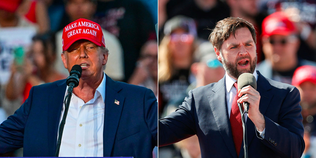 Pour l'épauler dans la course à la Maison Blanche, Donald Trump a choisi un sénateur de 39 ans comme colistier, J.D. Vance. Crédit KAMIL KRZACZYNSKI, Giorgio Viera / AFP