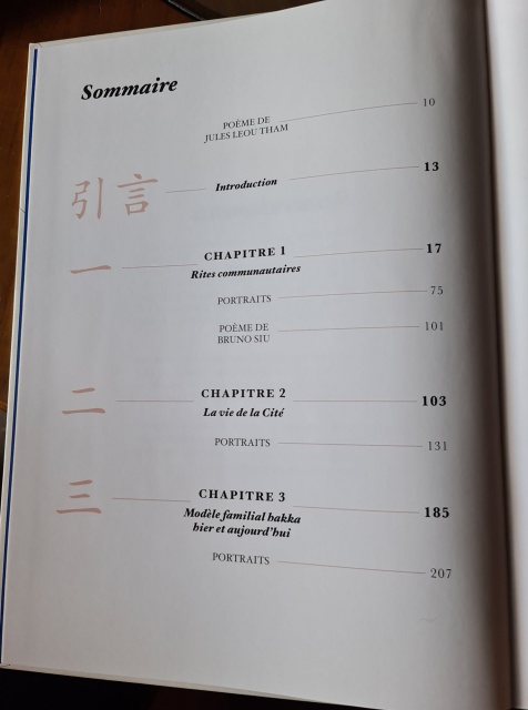 Tu Sang est un beau livre qui fait près de 500 pages. Il compte six chapitres qui traitent des rites communautaires, de la vie de la Cité, du modèle familiale hakka hier et aujourd’hui, de la tradition entrepreneuriale, d’identités croisées, et enfin de migration et de diaspora.