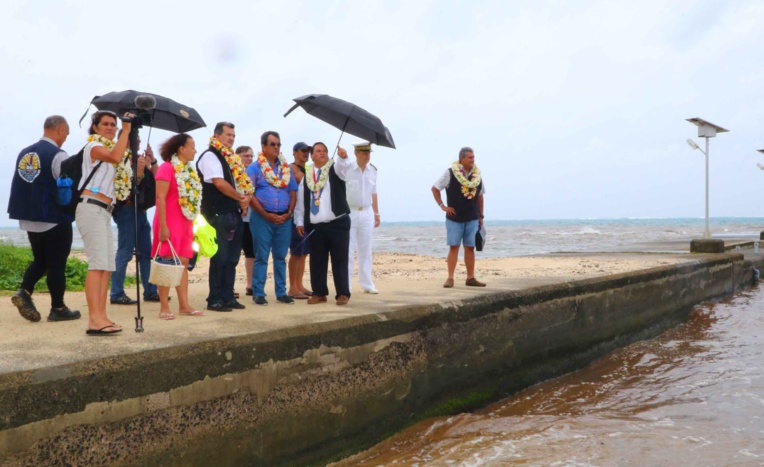 Après 20 heures de trajet, la délégation a été accueillie jeudi par le maire Tuanainai Narii et son conseil municipal. Le programme, qui comportait de nombreuses visites de terrain, a été bouleversé par une forte dépression qui s’est abattue sur l’île.