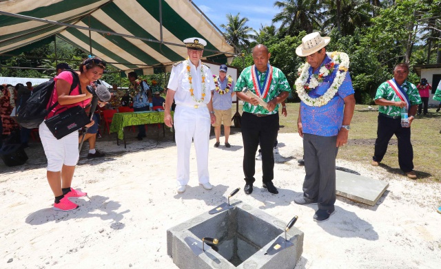 A Raivavae, la délégation a été accueillie par le maire Joachim Tevaatua et son conseil municipal avant de se rendre sur le site scolaire de Hataitararoa pour la pose de la première pierre de la nouvelle école. Celle-ci comprendra 10 classes pour accueillir les 118 élèves du primaire ainsi que la trentaine d’élèves du GOD (Groupement d'observation dispersé).