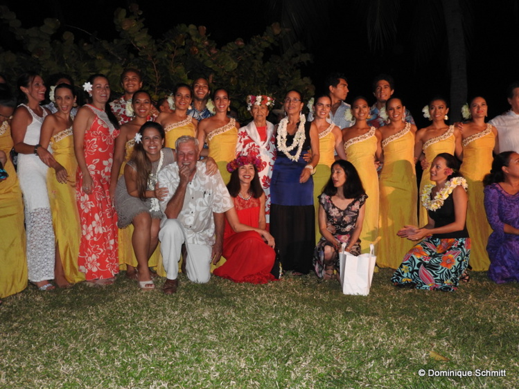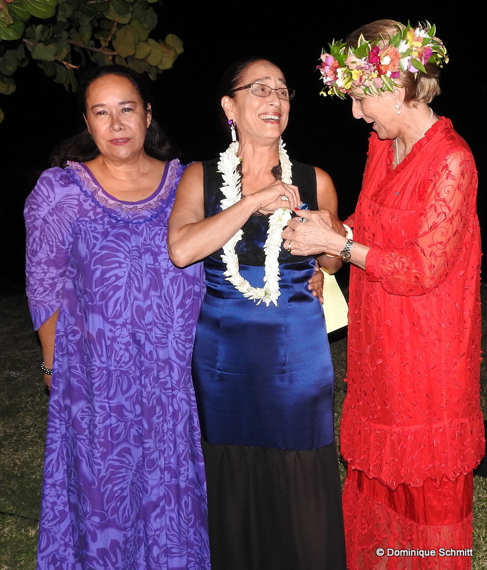 L'événement s'est déroulé jeudi soir, dans les jardins du Méridien, en présence de sa famille, de ses proches, de ses partenaires, et bien sûr des artistes de son groupe, à qui elle dédie cette consécration. La cérémonie a été menée par deux de ses amies de longue date : Manouche Lehartel, avec qui elle a lancé le concours 'Ori Tahiti Nui en 2012, qui est aussi chef de Toa Reva, présidente de la Fédération tahitienne de danse et conseillère au ministère de la Culture ; et Maiana Bambridge, ancienne directrice de l’OPH, aujourd’hui vice-présidente de la Croix-Rouge de Polynésie française. Le tandem féminin a fait l'éloge de Tumata Robinson dans un vibrant hommage, en mémoire à tout le chemin parcouru par cette grande dame du 'ori tahiti.
