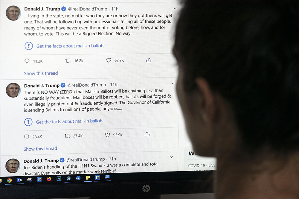 Le réseau social, souvent accusé de laxisme dans son traitement des propos tenus par des dirigeants, a ajouté mardi une mention "vérifiez les faits" à deux tweets du milliardaire républicain qui affirmait que le vote par correspondance était nécessairement "frauduleux".