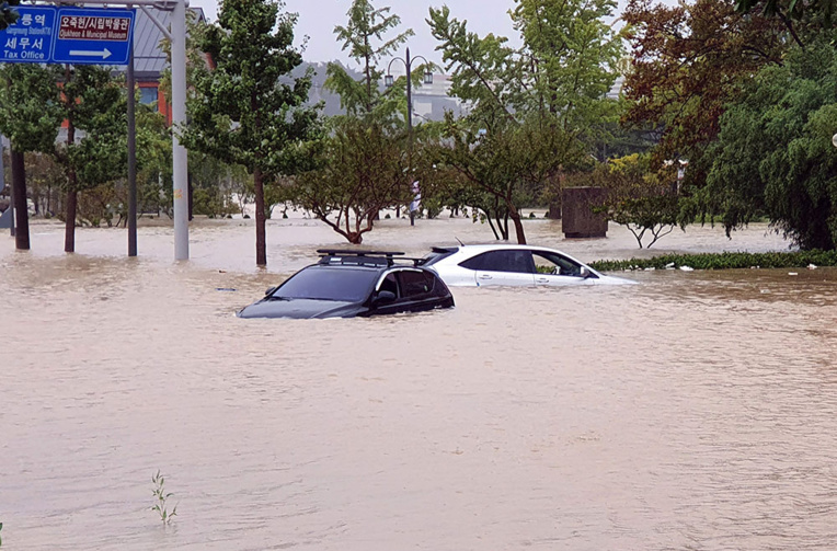Une sexagénaire a été retrouvée morte dans sa maison qui a été ensevelie lors d'un glissement de terrain dans la ville portuaire de Busan, dans le Sud, l'une des plus touchées par la tempête. Environ 600 secouristes tentaient de localiser trois autres personnes vraisemblablement emportées par ce glissement de terrain.