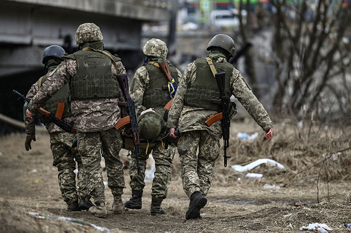 "Environ 1.300" militaires ukrainiens ont été tués depuis le 24 février l'armée russe a elle perdu "environ 12.000 hommes", avait indiqué samedi M. Zelensky, qui s'est rendu dimanche dans un hôpital de la région de Kiev, au chevet de soldats ukrainiens blessés.