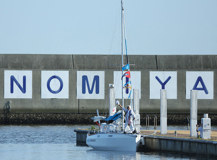 L'arrivée de l'aventurier des mers japonais Kenichi Horie dans le détroit de Kii (ouest du Japon) a marqué la fin d'un voyage de plus de deux mois, à bord du Suntory Mermaid III, qui a débuté dans un port de plaisance de San Francisco le 27 mars dernier.