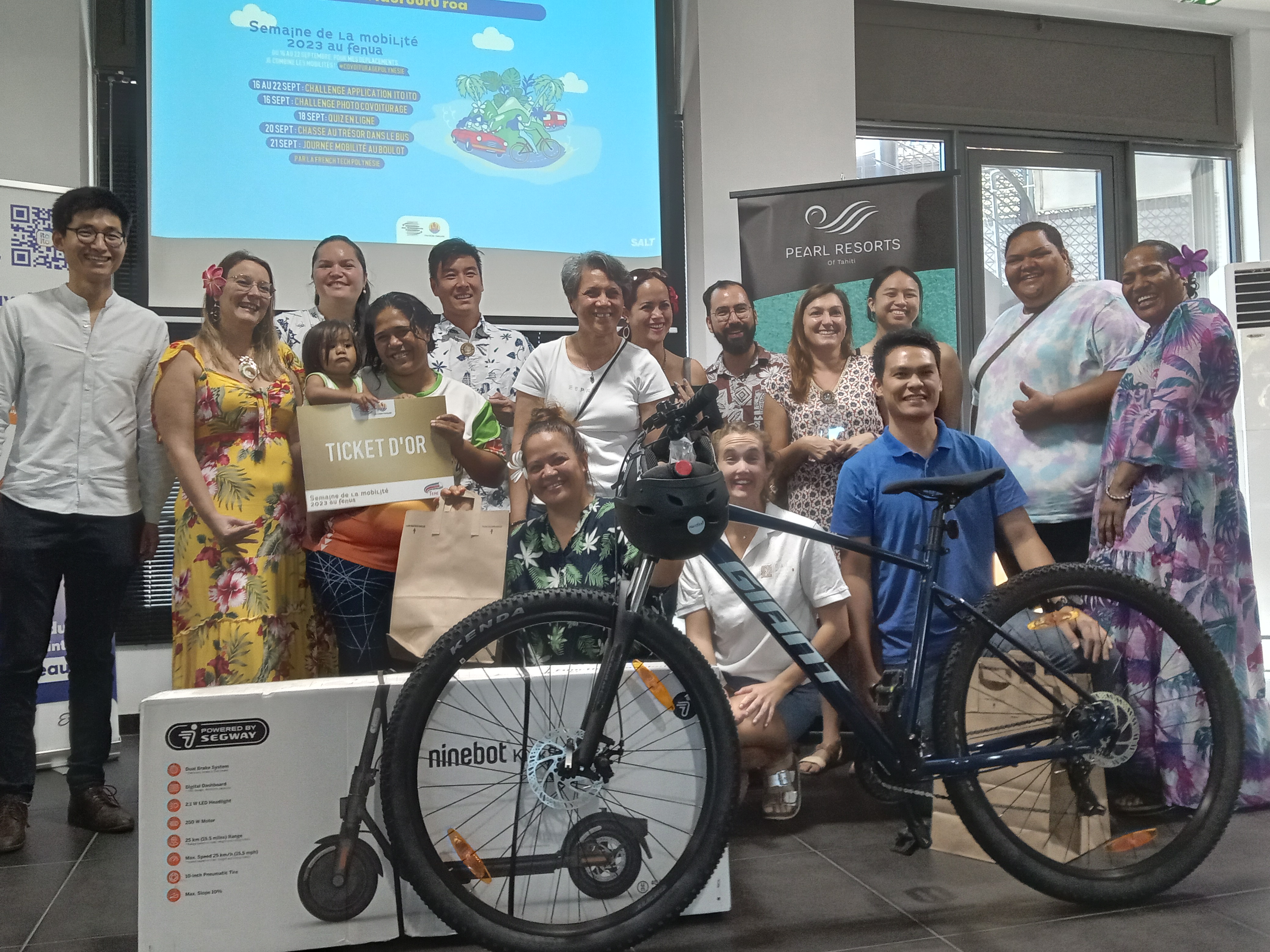 Challenge photo covoiturage, challenge application “ito ito” (une appli pour inciter les Polynésiens à marcher, courir ou faire du vélo) qui a bien fonctionné avec plus de 1 000 participants pour près de 7 500 km parcourus, mais aussi un quiz en ligne ou une chasse au trésor pour trouver le “ticket d'or” dans tous les bus de Tahiti ou encore la mobilité au boulot : les lauréats de ces différents jeux sont repartis ravis avec une trottinette, un vélo ou encore des séjours à Moorea. Peut-être aussi davantage convaincus par le fait de se déplacer autrement, peut-être pas tous les jours mais autant que faire se peut.
