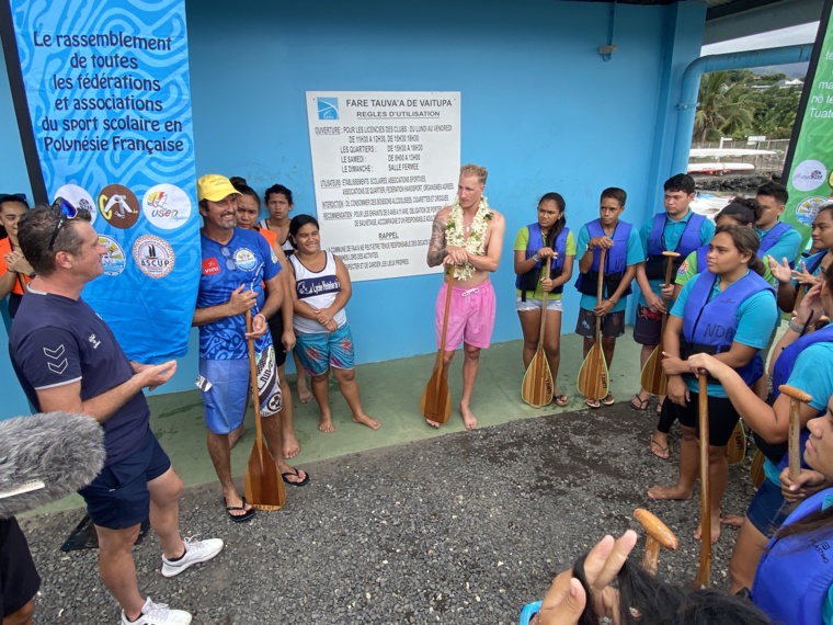 Après un rapide briefing sur la composition d'un équipage et sur le coup de rame à adopter, le triple médaillé des Jeux paralympiques de Tokyo a pu s'adonner à la pratique du va'a à Vaitupa. “Je suis super content d'être avec ces jeunes des sections sportives et de pouvoir apprendre avec eux le coup de rame à avoir. Je n'en ai jamais fait. Et puis passer un super bon moment avec eux et que l'on s'éclate”, a indiqué le champion avec un large sourire.